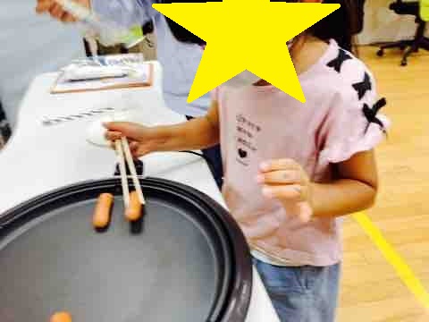 次に、ホットプレートでウインナーを焼きました。