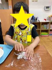 ラップを切ったり、具材を混ぜたり、握ったり、それぞれの工程を説明しながら、作ってもらいました。