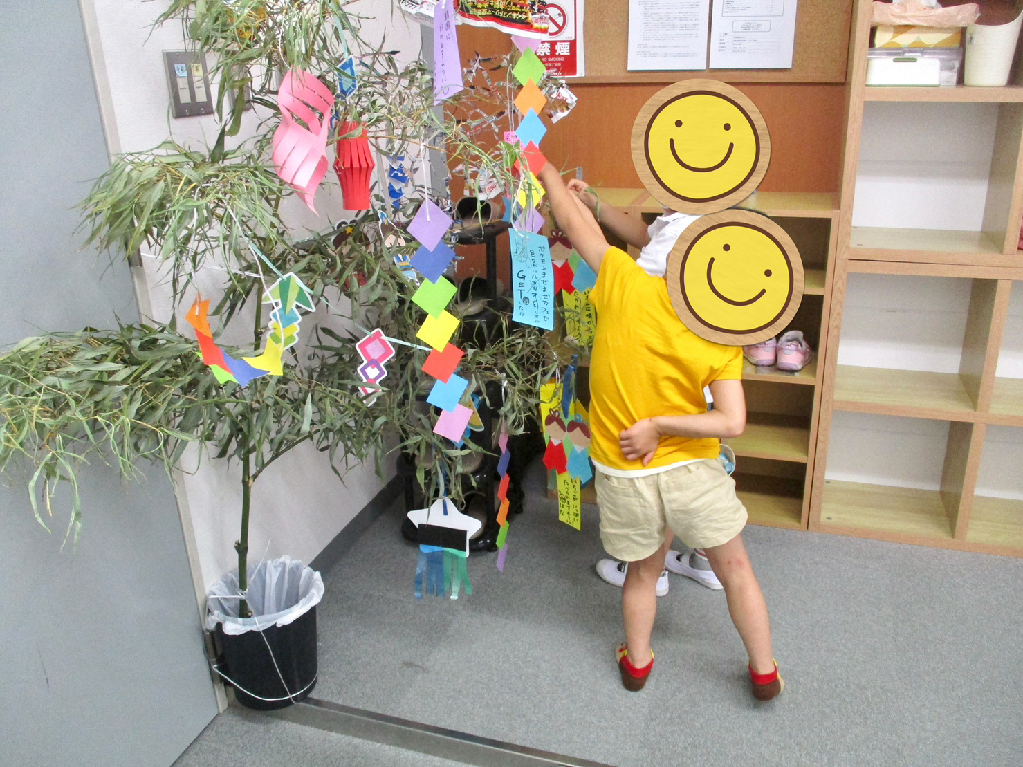 みらいおもいけ園から笹をもらい、七夕イベントを行いました。