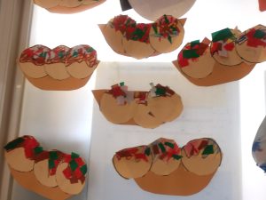 お子さん方にはまとあての的を作ってもらったり、飾り付け用のお面、
