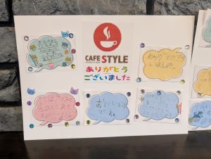 写真はカフェを利用した後、お子さん方が書いて贈った